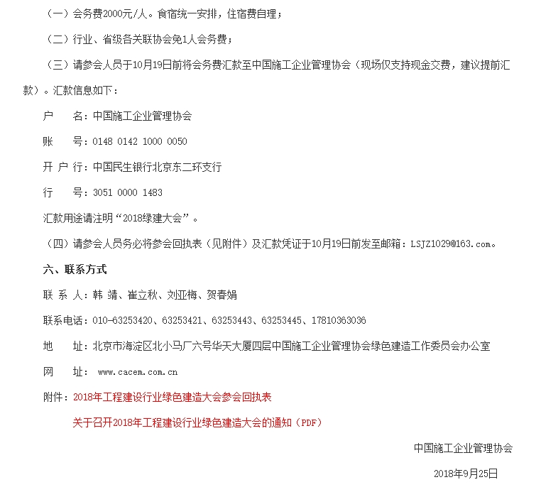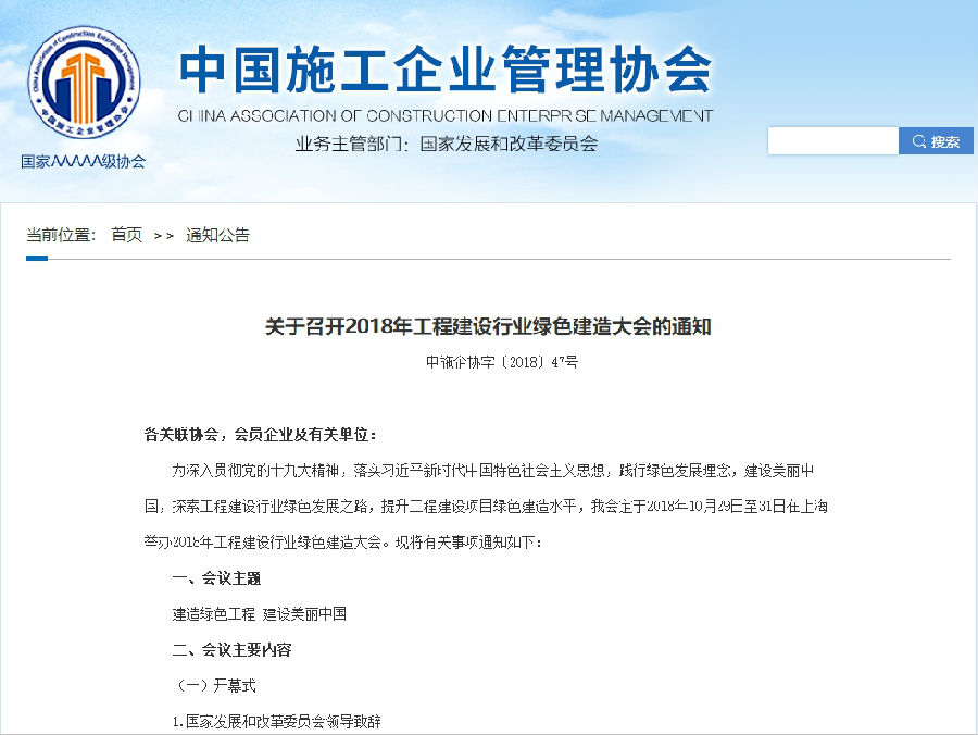 【轉發】中施企協關于召開2018年工程建設行業綠色建造大會的通知
