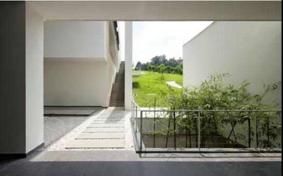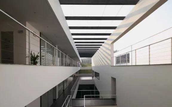冷巷與庭院的結合:冷巷與庭院的應用,為辦公空間提供自然通風所帶來的“涼風習習”的感受。同時還達到室內外環境的交融,營造出可供休憩交流的舒適的公共空間。