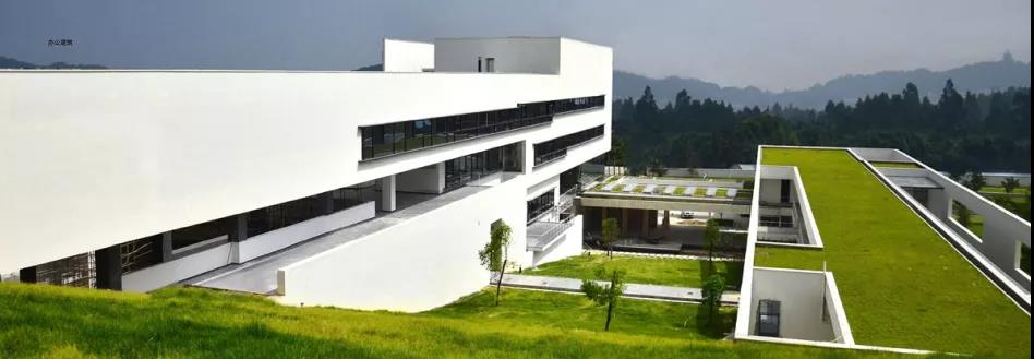 low-e 玻璃、加氣混凝土、屋面種植綠化的運用。建筑立面的主要開窗方式為條形推拉窗,在獲得良好采光通風效果的同時,避免了一般辦公樓在立面上使用大面積幕墻所帶來的負面效果。