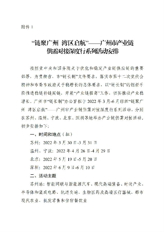 轉發廣州市"鏈長制"辦公室關于征集重點產業鏈合作項目及企業供需對接意向清單的通知