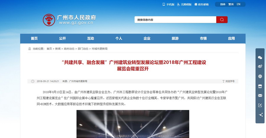 廣州市人民政府門戶網站 : “共建共享、融合發展”廣州建筑業轉型發展論壇暨2018年廣州工程建設展覽