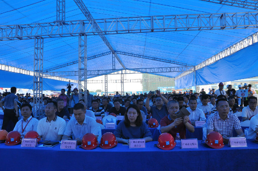 今天(6月12日)下午,由廣州市住房和城鄉建設局主辦,廣州市建筑業聯合會和廣州市番禺區住房和城鄉建設局協辦,中國建筑第四工程局有限公司、廣州建筑股份有限公司承辦的2019年廣州市建筑施工“安全生產月”和“安全生產萬里行”觀摩會在番禺區華南理工大學廣州國際校區舉行。市住建局黨組書記、局長王宏偉,番禺區委常委、區政府黨組副書記崔學軍,華南理工大學黨委副書記陶韶菁,中建四局副總經理王國祥,廣州市建筑業聯合會常務副會長、廣州建筑集團副總經理劉玉貴,以及各區住建局、各建設工程監督站相關負責同志、建設各方責任主體單位相關負責人共800人參加會議,我會常桂枝、邵丹、張江華副秘書長代表我會參會。