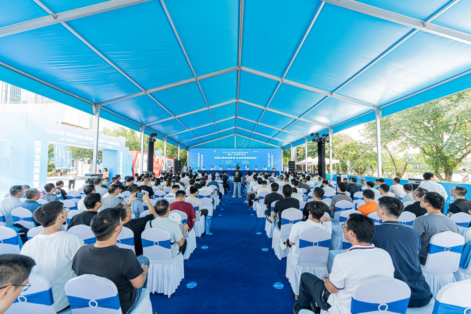 9月12日上午,2025年廣州市住房城鄉建設系統“質量月”現場觀摩交流會在廣州四建承建的愛帛琶洲總部大樓項目成功舉辦。本次活動以“加強全面質量管理 促進質量強國建設”為主題,由廣州市住房和城鄉建設局、海珠區住房和建設局主辦,廣州市建筑業聯合會、海珠區建設工程質量安全監督站協辦,廣州建筑集團及廣州市第四建筑工程有限公司等單位共同承辦,吸引了市、區工程建設行政主管部門相關負責人,以及相關行業協會、施工單位代表近300人現場觀摩,約500人線上參會。