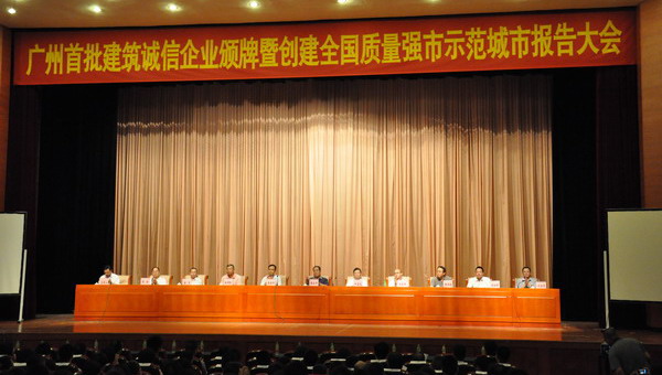 根據廣州市創建全國質量強市示范城市活動的要求和開展“質量月”活動的安排,同時為表彰我市首批建筑業誠信企業,深入扎實推進創建全國質量強市示范城市活動,2013年9月11日上午,我會組織召開了“廣州首批建筑業誠信企業頒牌暨創建全國質量強市示范城市報告大會”。