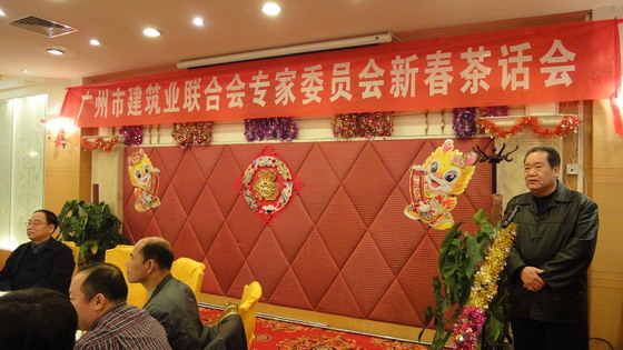 2月15日上午廣州市建筑業聯合會在東風大酒店宴會廳召開專家委員會新春茶話會。聯合會會長邵云平、副會長李中慶、副會長兼秘書長張田,副秘書長許決華、王德山、王輝,以及各專家委員會專家54人出席了茶話會。