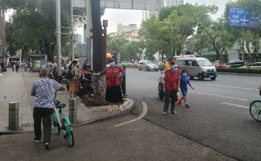 志愿者頭頂烈日,身穿馬甲,舉起小紅旗,走上街頭,在人員密集的十字路口開展交通秩序管理、文明宣傳、現場勸導服務活動,對過往行人闖紅燈、車輛亂停亂放、不走斑馬線、翻越隔離欄等不文明交通行為進行提醒和勸阻,引導廣大人民群眾遵守交通規則,提升文明交通意識,樹立“綠色出行文明交通”的理念,規范交通出行行為,自覺維護自身和他人生命安全,為我市營造良好的交通環境和文明秩序。