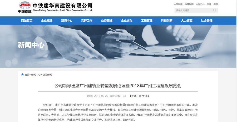 中鐵建華南建設有限公司報道:公司領導出席廣州建筑業轉型發展論壇暨2018年廣州工程建設展覽會