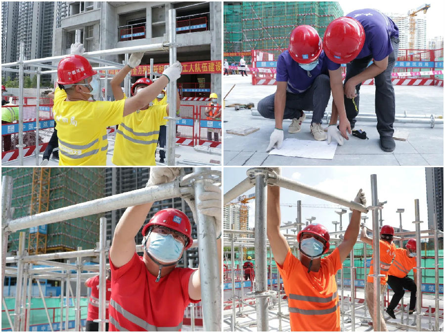 盤扣式模板支撐架搭設(shè)比賽分5組進(jìn)行