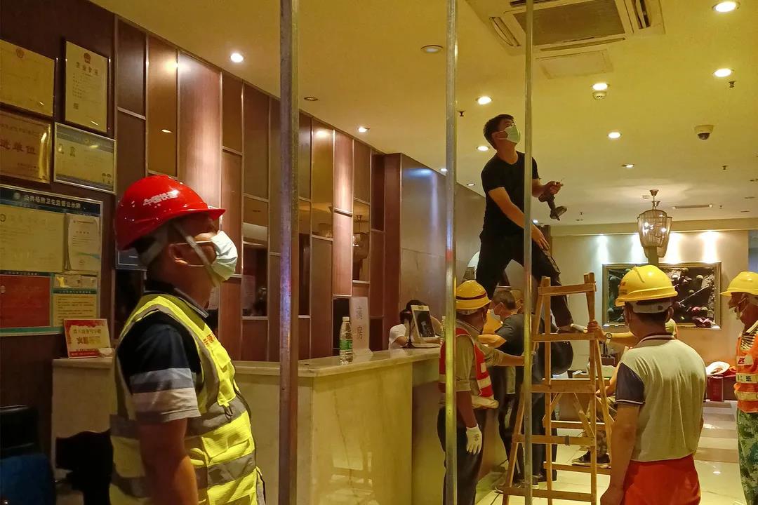 5月26日深夜,10號線八標項目部(中鐵二十五局管段)收到來自荔灣區東漖街道辦事處主任劉遠和鶴洞街道武裝部部長龔永清的求助后,立即組織小分隊,支援荔灣區西塱麥村的緊急隔離酒店設施建設。抵達施工現場,項目人員抓緊與荔灣區防疫主管人員商定隔離設施搭建方案,組織協調小分隊有序展開施工作業。他們責任到人,協作到位,平行作業,立體施工,與時間賽跑,經過9個小時的晝夜奮戰,完成了全部隔離設施的施工任務。