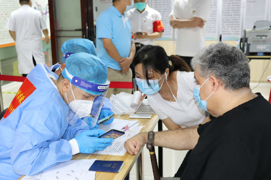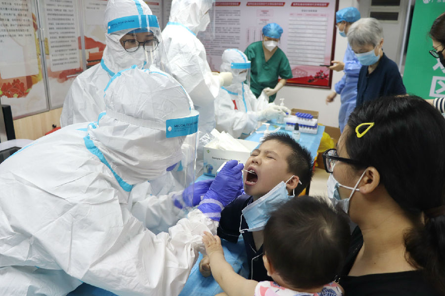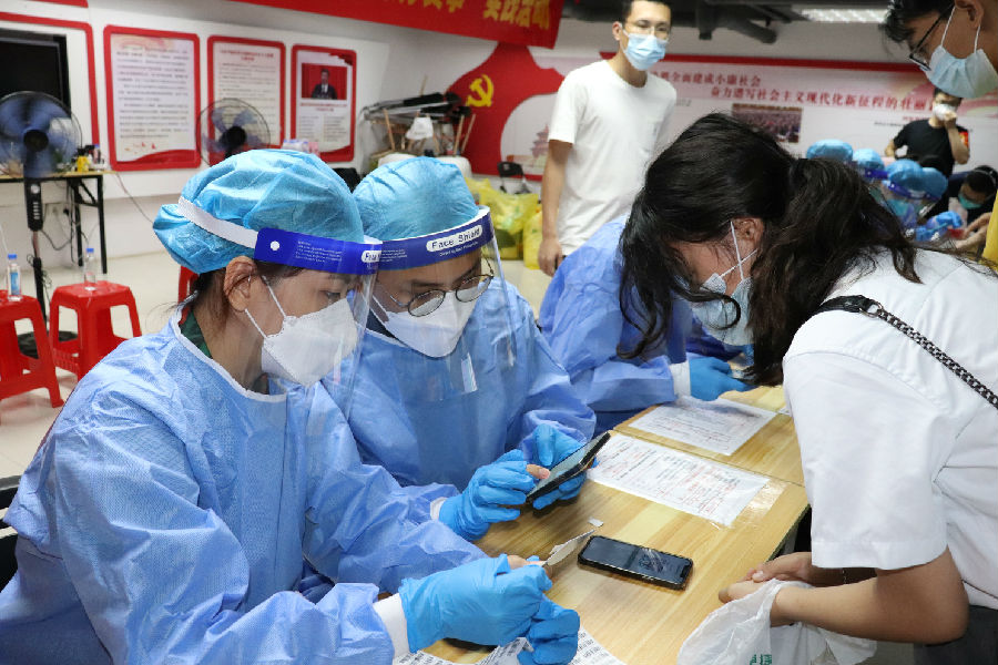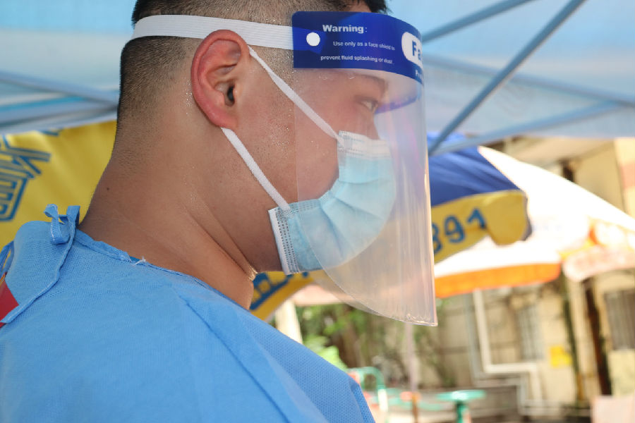 當天上午烈日當空,35攝氏度的氣溫從穿上防護服的那一刻就開始汗流不止。但面對排起長隊的街坊,看見市民群眾焦急等待的目光,他們也心急如焚,生怕會有群眾中暑而暈倒,就特意為老弱病殘者打開綠色通道,這促使余園園等人更加集中精力,全力以赴,忘我工作,只為盡快幫助群眾登記好信息,順利完成核酸檢測采樣。
