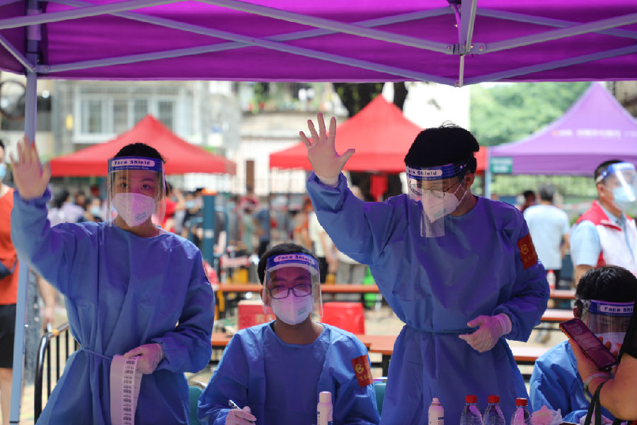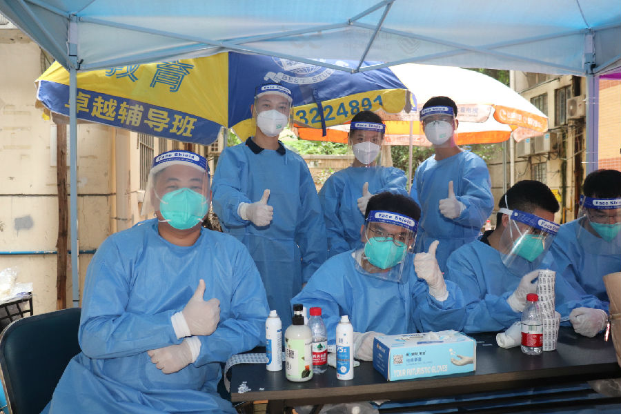 直到晚上11點半,結束了一天的核酸檢測工作,余園園才發現身上的衣服汗濕中夾雜著雨水散發著一股酸臭味,如現場的每一個堅守在崗位的志愿者一樣,憑靠必勝的意志堅守到了最后一刻。她說:“從疫情爆發以來的直觀感受,到親身參與其中的經歷,忍不住感嘆迎難而上的醫務工作者,抗疫路上的逆行者就是偉大的英雄!”沒錯,就是有這樣一個個默默無聞的“逆行英雄”,才為我們國家和人民撐起了一道堅不可摧的“抗疫防線”。