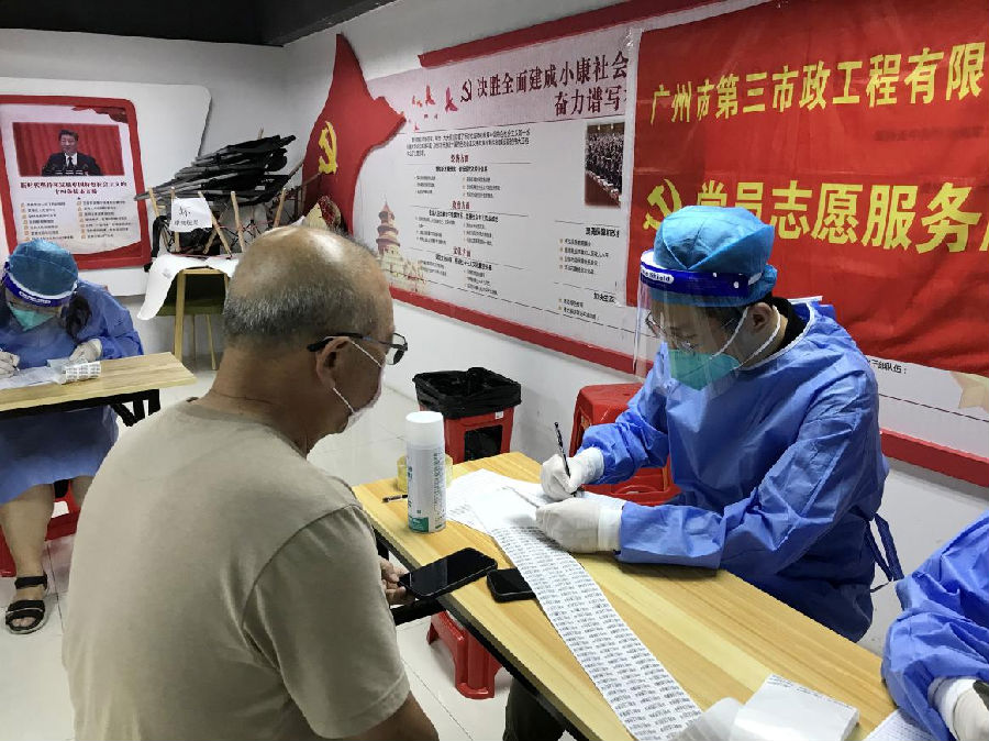 5月30日凌晨,接上級(jí)通知,我司迅速派出首批5名黨員志愿者參與建設(shè)街的“越秀區(qū)百萬核酸檢測(cè)大排查”行動(dòng),與建設(shè)街中馬路社區(qū)工作人員一同協(xié)助醫(yī)護(hù)人員為社區(qū)居民進(jìn)行核酸采樣。當(dāng)天上午氣溫高達(dá)35℃,下午又下起滂沱大雨,但是這都不能阻擋醫(yī)護(hù)人員和志愿者們?nèi)娜鉃槿罕姺?wù),默默堅(jiān)守崗位到晚上12點(diǎn)。