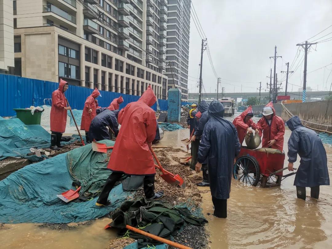 華北公司中原分公司屬中州坊、譽(yù)城2號(hào)院、御湖宸院、洛陽(yáng)酒店等各項(xiàng)目積極展開防汛工作,項(xiàng)目管理人員冒雨裝沙袋、維修電箱、商討積水分流、查看基坑狀況等工作,確保施工現(xiàn)場(chǎng)無(wú)安全隱患,為未來(lái)幾天的暴雨做好應(yīng)急準(zhǔn)備。