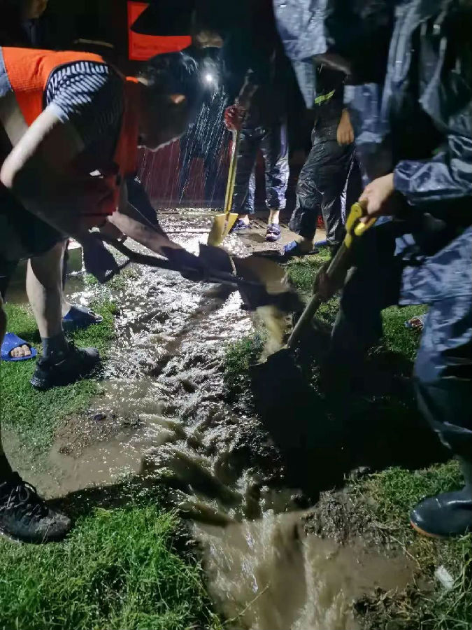 項(xiàng)目部實(shí)行24小時(shí)值班,每小時(shí)對(duì)現(xiàn)場(chǎng)基坑架體、結(jié)構(gòu)地下室等關(guān)鍵部位進(jìn)行應(yīng)急巡視,一經(jīng)發(fā)現(xiàn)異常情況,及時(shí)組織人員開展應(yīng)急工作。同時(shí),項(xiàng)目部根據(jù)實(shí)際情況,積極加入當(dāng)?shù)貞?yīng)急救援群,投身防汛抗洪工作中。