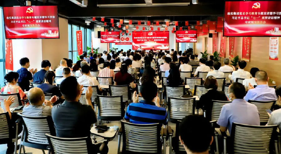 為深入學(xué)習(xí)貫徹習(xí)近平總書記“七一”重要講話精神,推動(dòng)黨史學(xué)習(xí)教育走深走實(shí),7月27日下午,珠實(shí)集團(tuán)黨委在廣州頤德大廈17樓會(huì)議室舉辦黨史學(xué)習(xí)教育專題宣講暨學(xué)習(xí)貫徹習(xí)近平總書記“七一”重要講話精神專家輔導(dǎo)報(bào)告會(huì)。集團(tuán)領(lǐng)導(dǎo),集團(tuán)中層副職及以上領(lǐng)導(dǎo)干部,二級(jí)企業(yè)黨建部門主要負(fù)責(zé)同志,基層黨員代表共160余人參加輔導(dǎo)報(bào)告會(huì),市委黨史學(xué)習(xí)教育第十巡回指導(dǎo)組領(lǐng)導(dǎo)到會(huì)指導(dǎo)。輔導(dǎo)報(bào)告會(huì)由集團(tuán)黨委副書記丁昌銀主持。 廣東省委講師團(tuán)專家王玉云以“奮斗百年路,啟航新征程”為主題,作黨史學(xué)習(xí)教育專題宣講,并講授學(xué)習(xí)貫徹習(xí)近平總書記“七一”重要講話精神專題輔導(dǎo)報(bào)告。