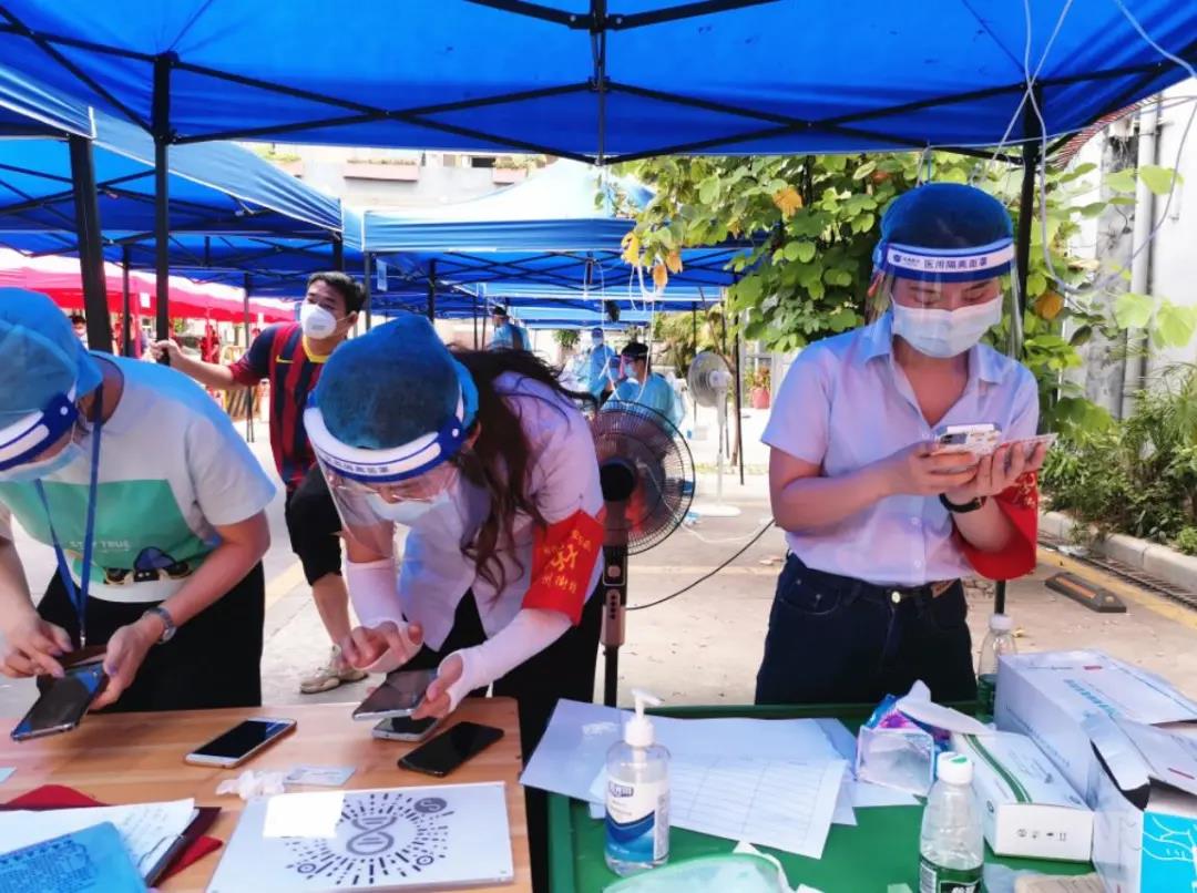 廣州的6月已是炎炎夏日,志愿者們穿著志愿背心,戴著口罩、面屏和帽子,在烈日下持續工作6個小時,志愿者們個個唇焦口燥、汗如雨下,但大家并沒有退縮。當天的核酸排查,前來核酸檢測的街坊絡繹不絕,志愿者們不僅要做好手頭工作,面對心急的街坊還要耐心解釋工作流程和安撫情緒,工作雖然簡單,但堅持下去卻不簡單,最終志愿者們協助街道辦完成了超5000人的核酸檢測工作。