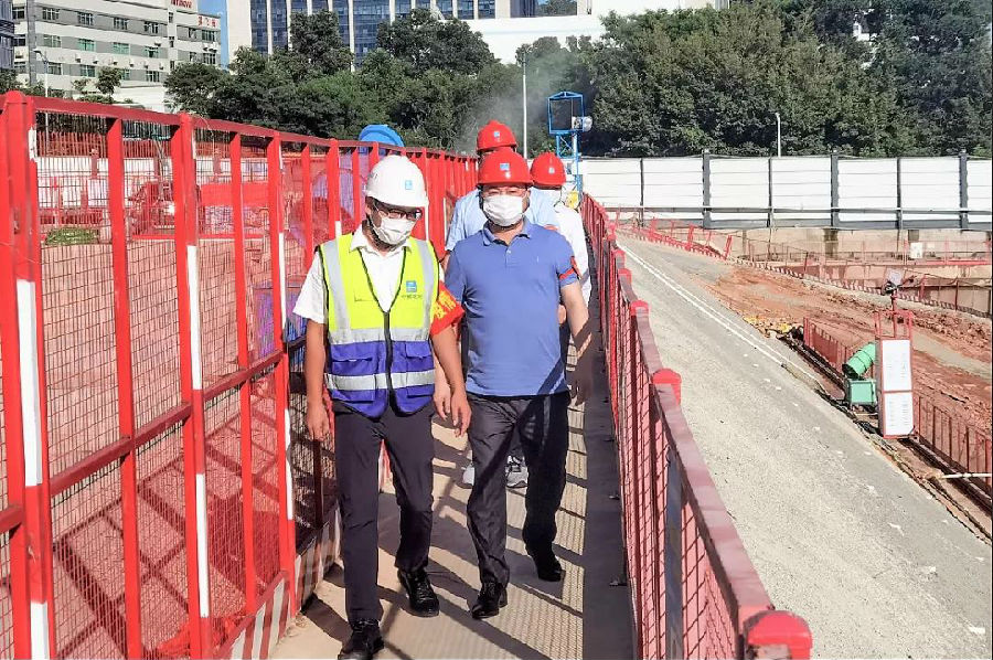 8月23日,中建三局三公司黨委書記、董事長王延波赴華南分公司深圳觀瀾高新園區(A907-0133 宗地)項目檢查疫情防控和安全生產工作,公司副總經理、華南分公司黨委書記、總經理齊從月,辦公室相關負責人等參加檢查。