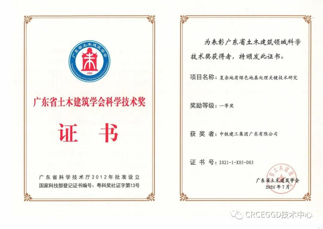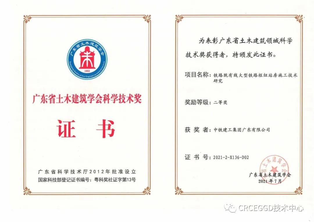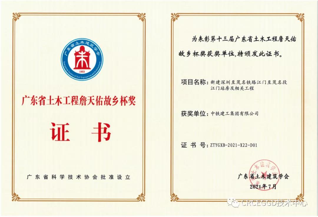 2021年8月,第九屆廣東省土木建筑學會科學技術獎評審及表彰大會順利召開。公司首次榮獲省級學會科學技術獎,取得了省級學會科學技術獎從無到有的突破!同月,獲得廣東省土木工程詹天佑故鄉杯獎!