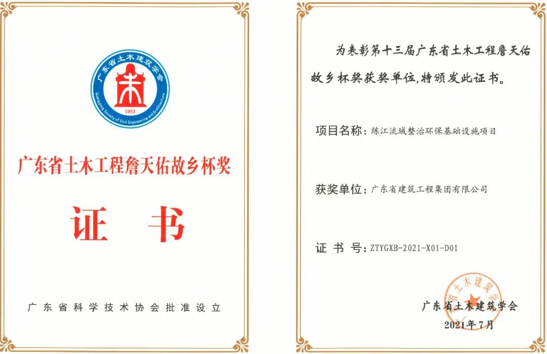 近日,廣東省土木建筑學會在廣州分別召開了“廣東省土木建筑工程技術創新交流及成果展示會”和“第十三屆廣東省土木工程詹天佑故鄉杯獎頒獎大會”。由廣東建工總承包事業部統籌統管的練江流域整治環保基礎設施項目榮獲第十三屆廣東省土木工程詹天佑故鄉杯獎和廣東省土木建筑學會科學技術獎一等獎,并被推薦為本屆詹天佑故鄉杯獎頒獎大會的交流項目。此外,總承包事業部另有8項創新技術榮獲科學技術獎二、三等獎。