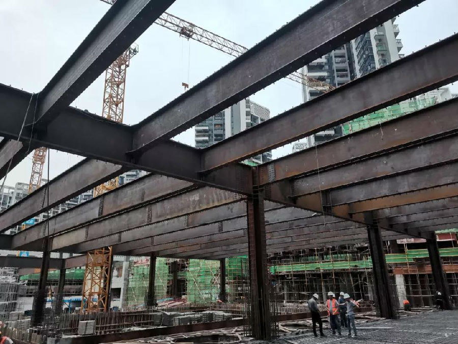 鋼結構主體下部是階梯教室等功能空間。施工場地狹窄,鋼結構施工難度大,立體交叉施工存在一定風險,項目針對各個施工環節,合理布置場地、調運材料,安排班組流水施工,科學優化工序,保障施工安全、順暢。