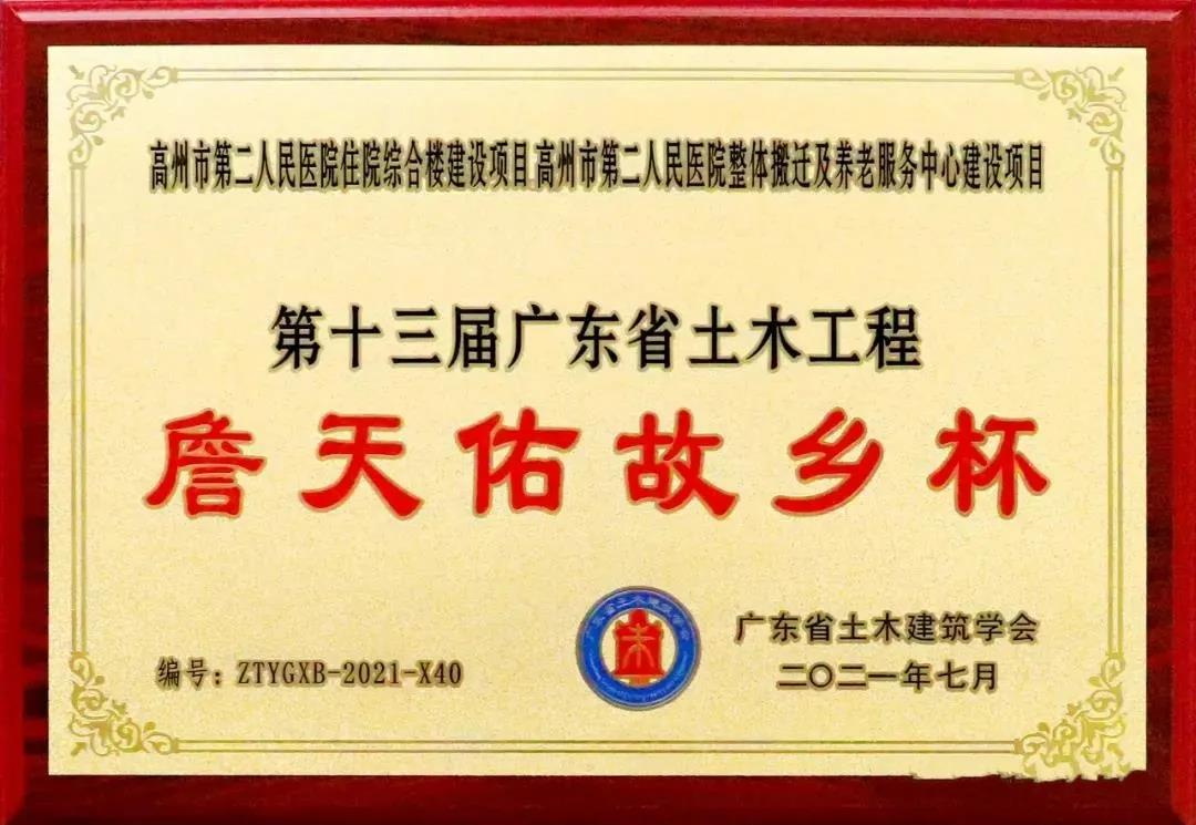 近日,廣東省土木建筑學會在廣州越秀國際中心組織召開了廣東省土木建筑工程技術創新交流及成果展示會,會上舉行了第十三屆廣東省土木工程詹天佑故鄉杯獎頒獎儀式,由我司承監的高州二院項目工程榮膺“第十三屆詹天佑故鄉杯獎”。