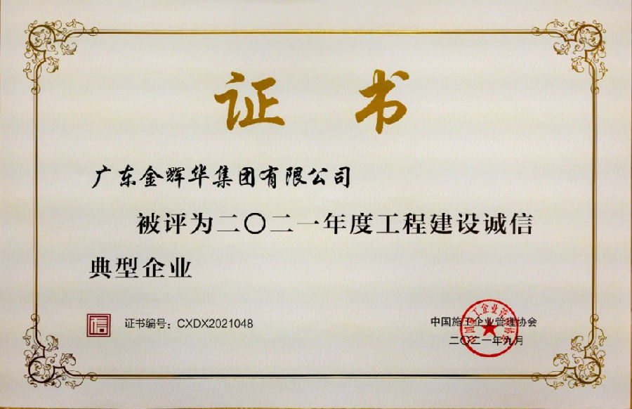 廣東金輝華集團有限公司連續(xù)兩年獲評“工程建設(shè)誠信典型企業(yè)”稱號,充分肯定了集團公司在誠信經(jīng)營、規(guī)范運營、社會信譽等方面的良好表現(xiàn)。集團公司也將繼續(xù)堅持誠信經(jīng)營,再接再厲,不斷推動工程建設(shè)行業(yè)誠信建設(shè)持續(xù)健康發(fā)展。