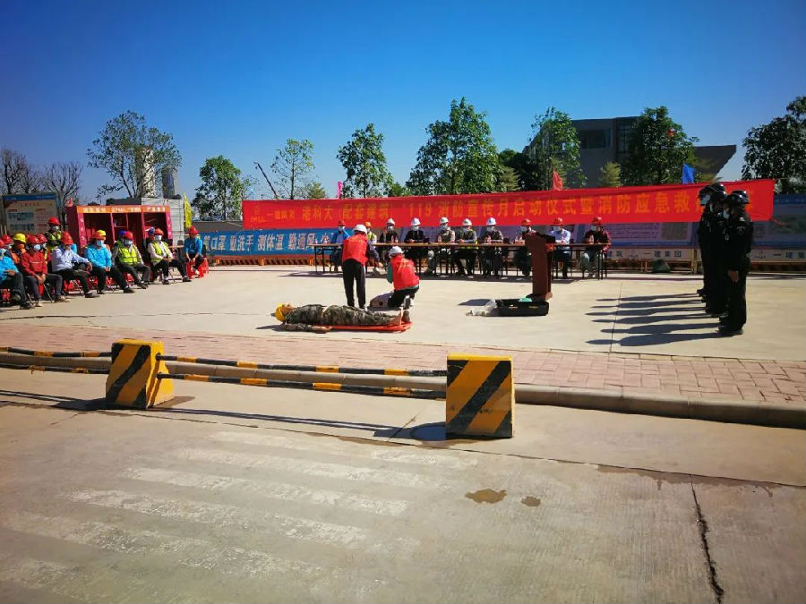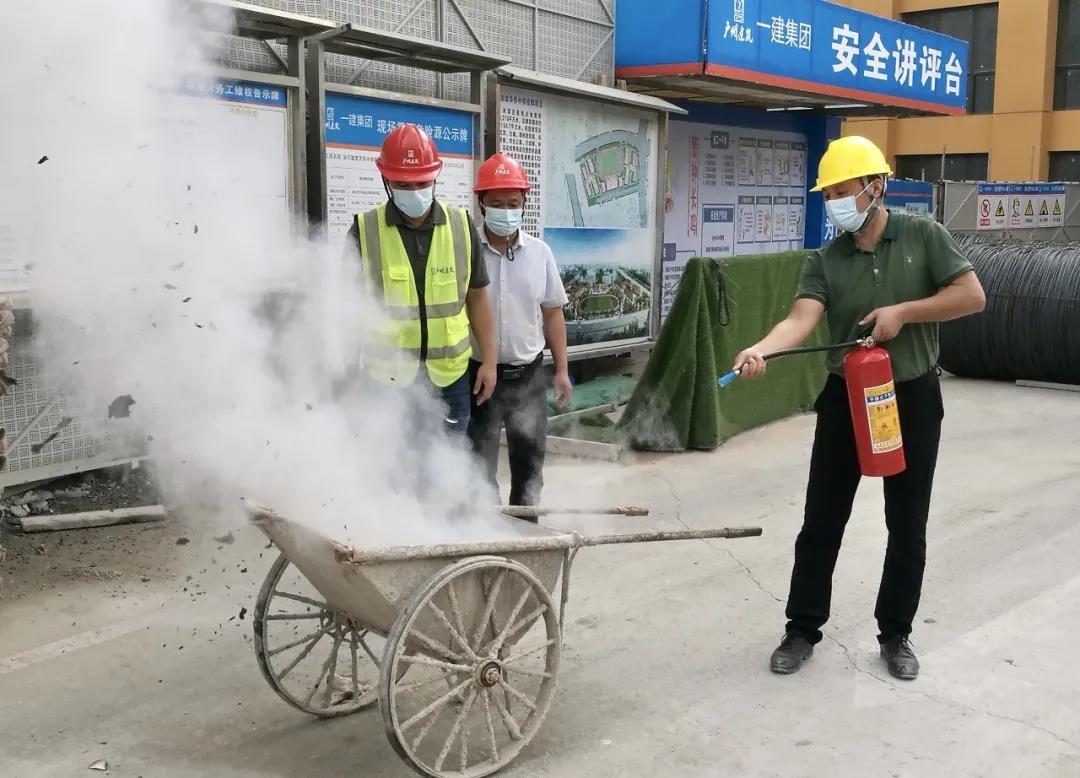 演練活動內容包括消防安全知識教育學習、模擬施工現場發(fā)生火災應急救援、搶救急救受傷昏迷人員。演練首先由物業(yè)消防主管結合建筑工地的實際情況,對在場人員講解項目施工區(qū)、辦公區(qū)、宿舍區(qū)用火用電的消防常識,滅火器材使用要領及示范,電動車充電注意事項等消防安全知識。