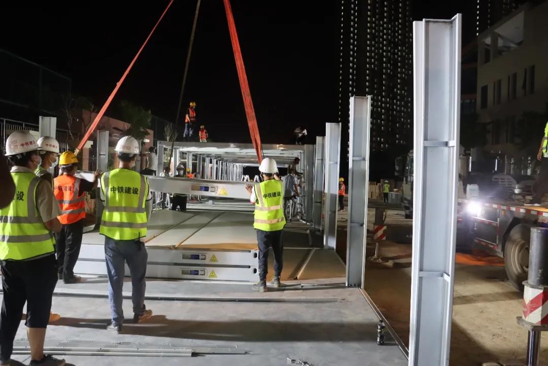 中秋夜,項目人員通宵安裝醫療防疫快拼箱