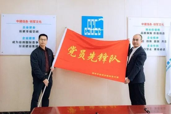 劉其峰進行“黨員先鋒隊”授旗,呂世杰接過旗幟,表示在之后的工作中將積極發揮臨時黨支部的平臺效應,組織開展黨建聯建活動,使黨建工作真正發揮推動發展、服務群眾、凝聚人心、促進和諧的作用。