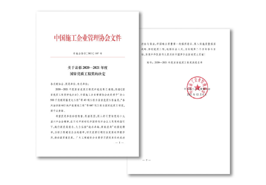 國家優質工程獎設立于1981年,是經國務院確認的我國工程建設領域設立最早,規格最高,跨行業、跨專業的國家級質量獎,對獲獎項目中特別優秀的授予國家優質工程金質獎榮譽。