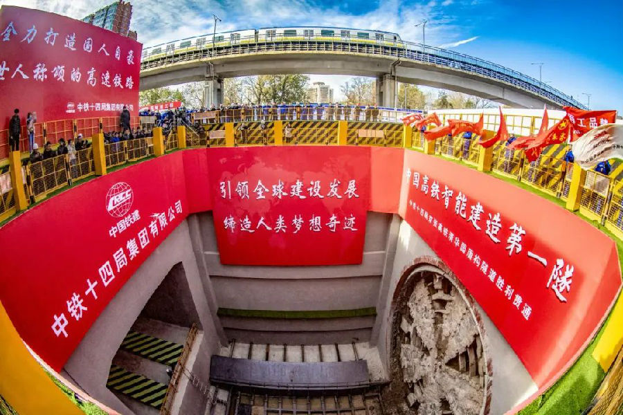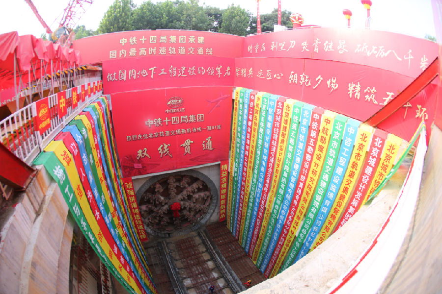 中鐵十四局參與建設的北京大興國際機場線(軌道交通新機場線一期工程)全長41.4公里,途經豐臺、大興兩區,設計時速160公里,是國內最快地鐵線之一。該工程地下段最長盾構隧道,是影響全線按時通車的控制性標段。該區段采用2臺管片外徑8.8米的國產大直徑盾構施工,屬國內單線直徑最大的地鐵盾構隧道。在無水卵石地層中一次性掘進3847米,是國內地鐵施工領域獨頭連續掘進最長的盾構隧道。該項目通過理論分析、模擬計算、現場實踐、軟件開發和監測平臺研發等手段,取得了一系列創新性成果,克服了砂卵石地層盾構刀具磨損難測、施工效率較低、施工風險較高等技術難題,并授權專利6項、發布工法2項、發表論文10篇。
