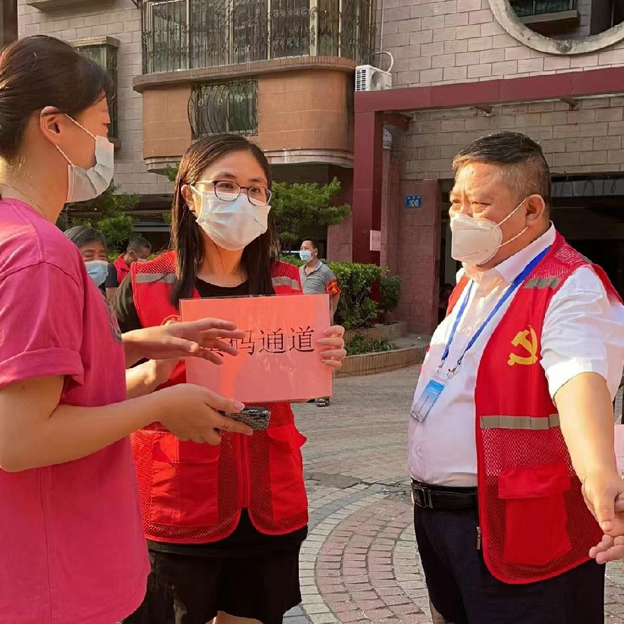4 月 9 日清晨,家住白云區(qū)的超過 30 名珠江設(shè)計干部職工陸續(xù)收到了所住社區(qū)實施封控/管控措施的通知,大伙還沒來得及安頓,就收到了市委鼓勵區(qū)內(nèi)國企干部職工就地下沉抗疫的號召。“設(shè)計二所黨員梁孟曦,我住白云,我報名!”“市場部黨員鄭戈,我也在白云,我可以!”“運營管理部黨員陳荔赟報名”......沒有絲毫猶豫,一支臨時戰(zhàn)疫先鋒隊在線迅速集結(jié)完畢,立即亮身份、投入社區(qū)開展核酸檢測、維持秩序、驗碼測溫、逐戶排查、張貼通知、信息登記工作。
