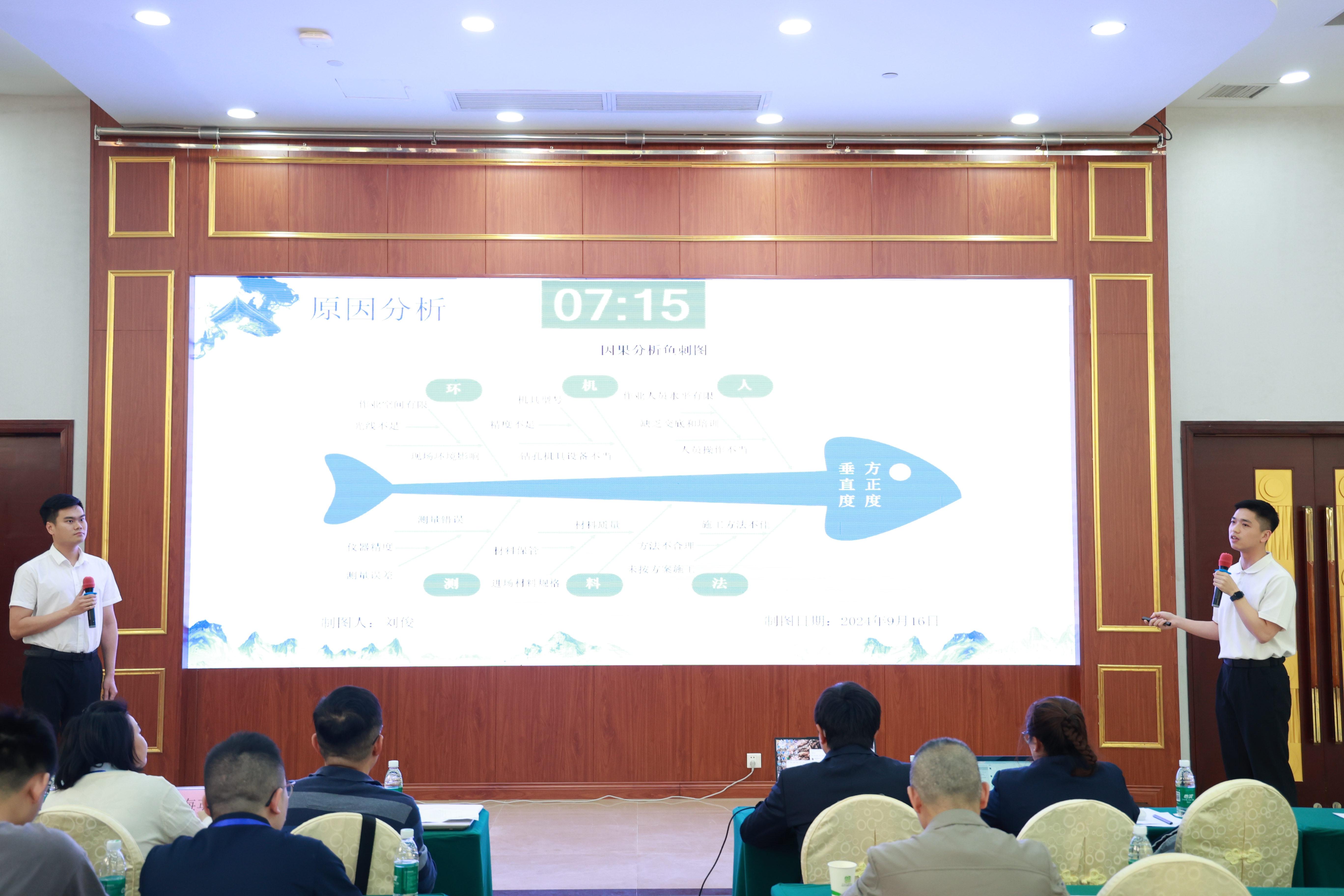 活動現場,各小組通過PPT演示、模型展示、視頻演繹等多元形式,生動呈現質量管理創新實踐,其中好房子建設、綠色低碳、智能建造等前沿技術應用案例引人矚目;專家現場逐項點評,精準剖析成果亮點,最終成績經多輪復核后確認。