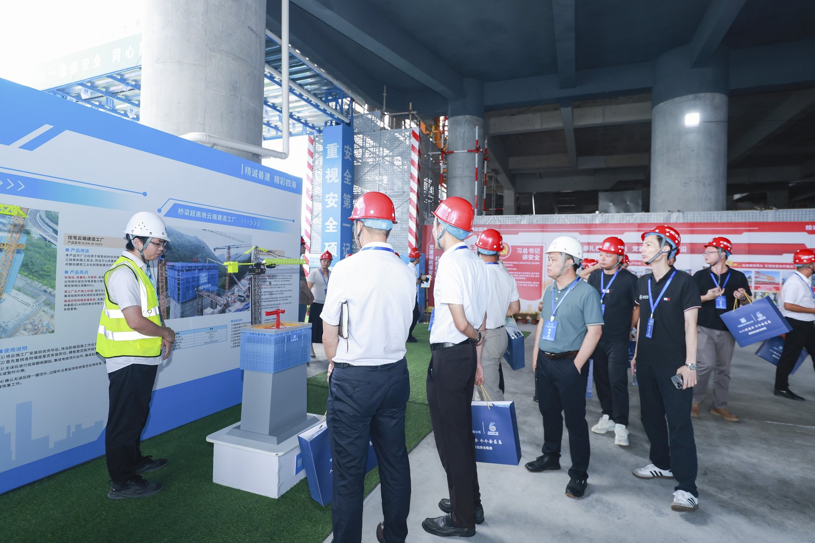 本次觀摩活動緊密圍繞“人人講安全、個個會應急——查找身邊安全隱患”的主題,活動現場播放了“安全生產月”主題宣傳片和事故警示教育片等。同時現場為觀摩人員設置了九大展區,分別展示“科技創新,賦能安全”、“黨建鑄魂,引領安全”、“智慧建造,護航安全”、“標準筑基,長效安全”、“智能建造,本質安全”、“精益建造,品質安全”、“綠色施工,生態安全”、“隱患治理,保障安全”以及“云端建造,助力安全”的相關內容。