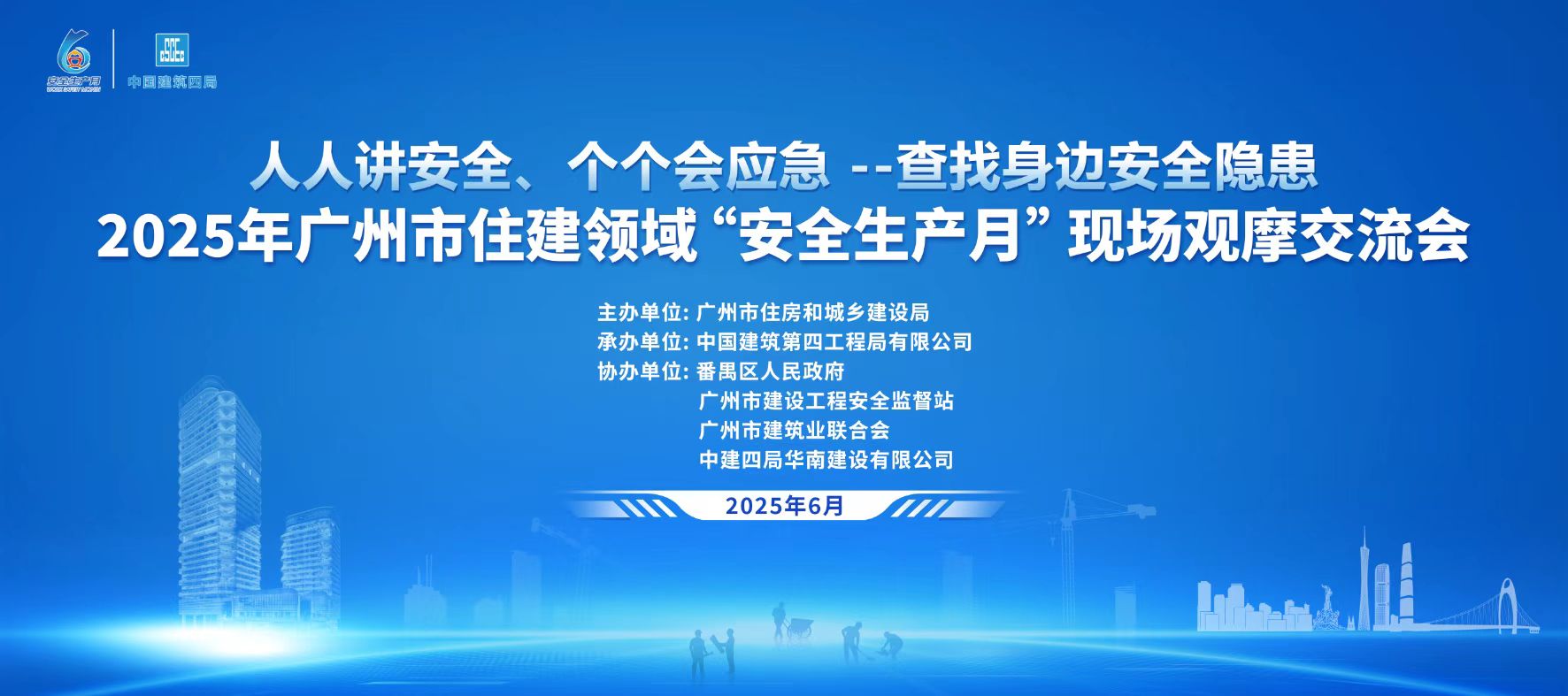 2025年,廣州市住房和城鄉建設局主辦的“安全生產月”及“安全生產廣州行”觀摩交流會主會場活動,于6月16日上午在廣州環球貿易廣場C區5號地塊(BA0501114地塊)項目成功舉辦。本次活動由廣州市住房和城鄉建設局主辦,番禺區人民政府、廣州市建設工程安全監督站、廣州市建筑業聯合會以及中建四局華南建設有限公司的聯合協辦,中國建筑第四工程局有限公司承辦。廣州市各區住建局分管負責人、行業協會、在穗部分項目的建設、施工、監理單位項目負責人出席啟動會議。