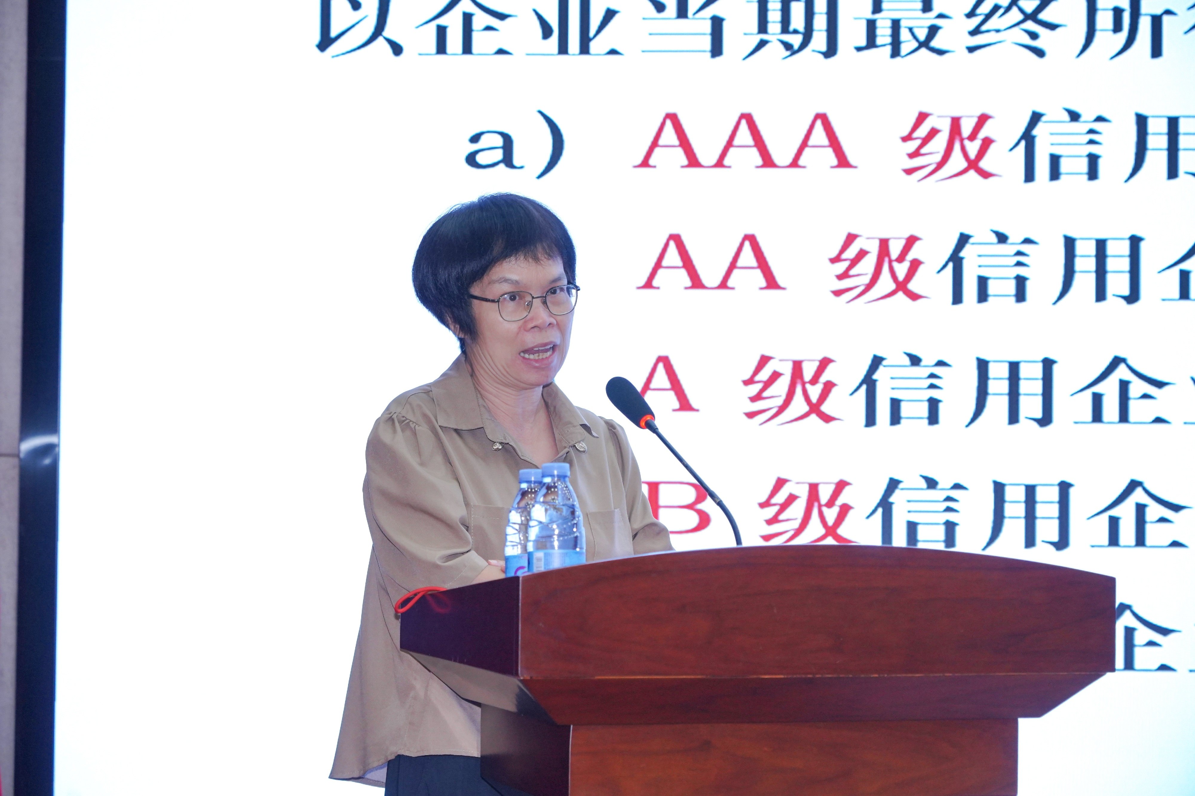 (照片:中國誠信信用管理股份有限公司總裁助理,高級信用管理師邱瓊梅,以《建筑企業信用風險管理與信用修復》為主題,通過豐富的案例分析和精準的數據解讀,系統性地闡述了建筑企業信用管理體系的構建要點與信用修復的實施路徑)