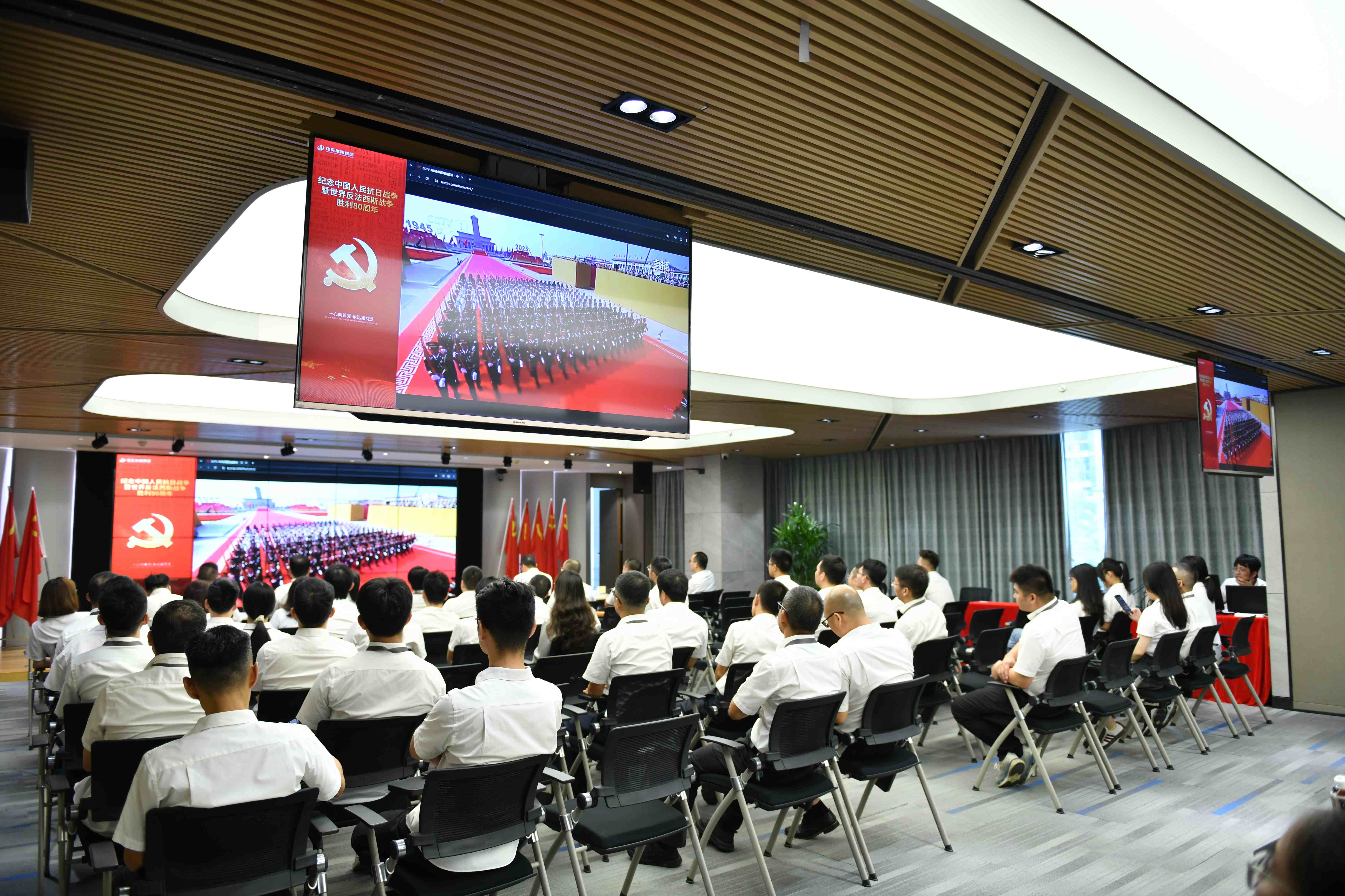各建筑企業結合自身實際,以黨支部學習、部門集中觀看等形式觀看9·3閱兵。企業將觀看直播作為“主題黨日”重要內容,組織黨員干部帶頭學習;開放職工書屋、會議室等公共空間,為一線員工提供集中觀看條件;還有的企業通過線上共享觀看鏈接,確保駐外項目、出差人員“不缺席”。