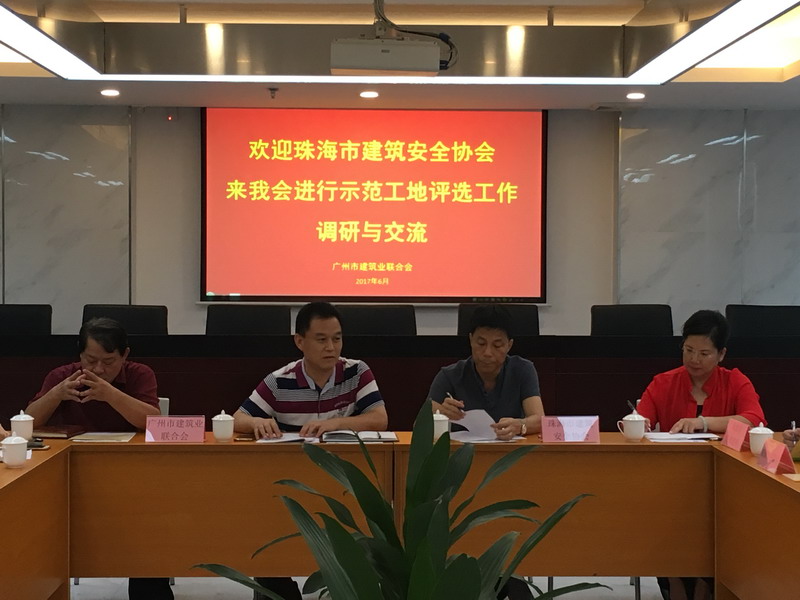 我會常桂枝副秘書長代表廣州市建筑業聯合會對客人到來表示熱烈歡迎,并介紹了聯合會的基本情況。我會行業部王濃斯主任向建筑同行們介紹了廣州開展安全文明施工樣板工地、示范工地活動的歷史及目前工地評選工作的基本做法。客人向我會也介紹了珠海市目前創建示范工地的情況,對我會的規范運作表示贊賞。
