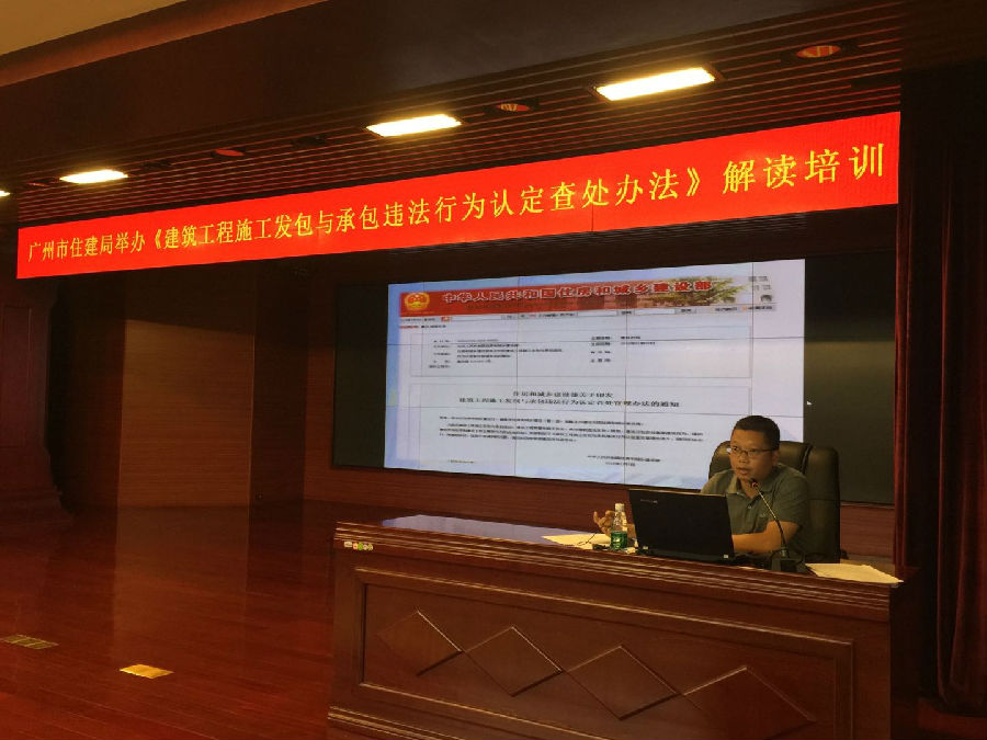 為規范我市建筑工程施工承發包活動,維護建筑市場秩序,廣州市住房和城鄉建設局擬于近期開展查處房屋建筑工程發包與承包違法行為專項行動。為保證專項行動順利進行,9月10日上午,我會協助市住建局在廣州公共資源交易中心二樓拍賣大廳舉辦第二場《建筑工程施工發包與承包違法行為認定查處辦法》解讀培訓班,對有關單位負責人進行培訓。市標辦副主任李芮兵、我會張江華副秘書長出席本次培訓班。本次培訓由市住建局建管處鄭文棟科長主持。