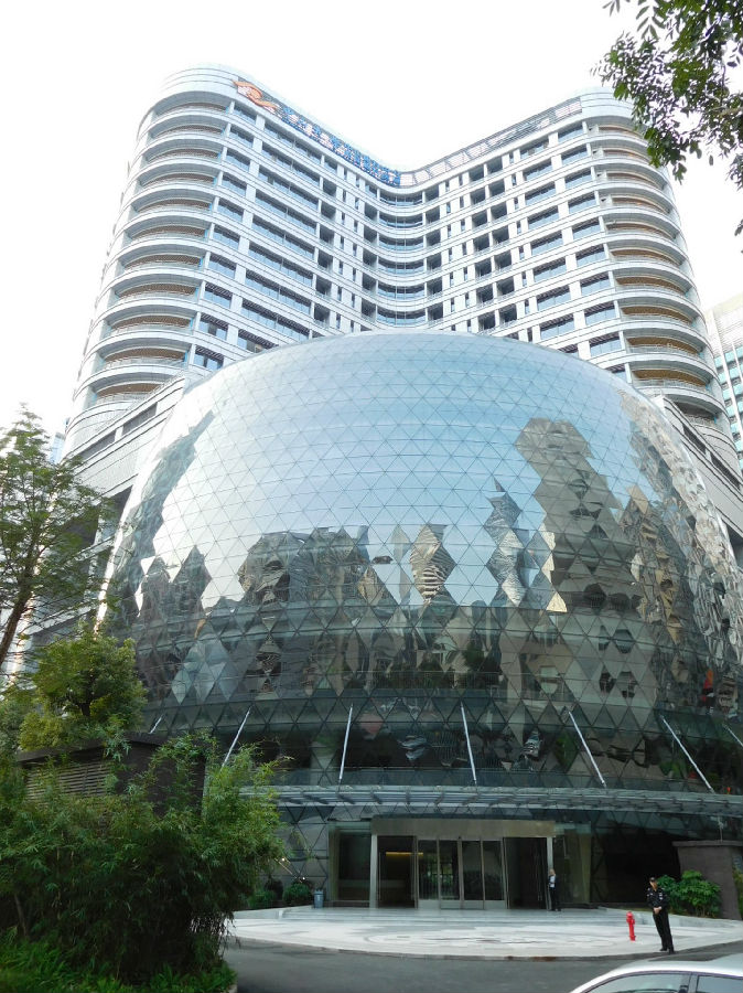 會議報告廳為圓球型鋼架屋頂,地下室負一層與首層為預埋鋼柱,地上部分為鋼梁、屋蓋等結構。型鋼混凝土梁結構跨度大,吊裝時精度要求高;型鋼、鋼筋混凝土梁與型鋼柱交接處,可控性要求高;部分柱體采用鋼管柱結構,鋼管柱內核芯混凝土,鋼與混凝土的結合是質量控制的重點,同時,會議報告廳屋面為圓球造型是本工程施工的難點。