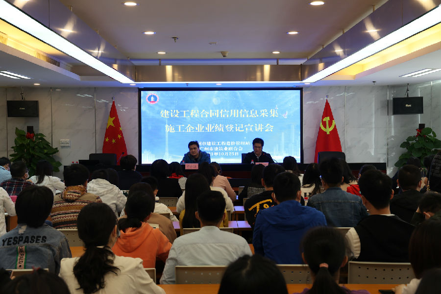 10月25日,我會聯合廣州市建設工程造價管理站在大會議室舉辦了一場“建設工程合同信用信息采集、施工企業業績登記宣講會”。宣講會以“幫助施工企業解決房屋建筑、綜合管廊、照明工程建設項目合同信用信息采集,以及施工企業建筑工程施工總承包、專業承包業績登記等工作的疑難問題”為目的。來自各施工企業代表100余人參加會議。