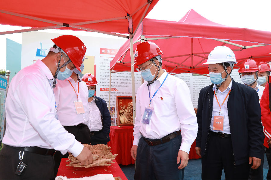 本屆擂臺賽設(shè)置裝配式建筑混凝土預(yù)制構(gòu)件裝配作業(yè)、木雕工、砌筑工、鑲貼工、建筑模型(BIM)制作工、鋁模工、鋼筋工、電焊工等8個比賽項(xiàng)目,比賽試題緊扣建黨百年主題,相繼采用了紅色、“100”、“2021”等元素。
