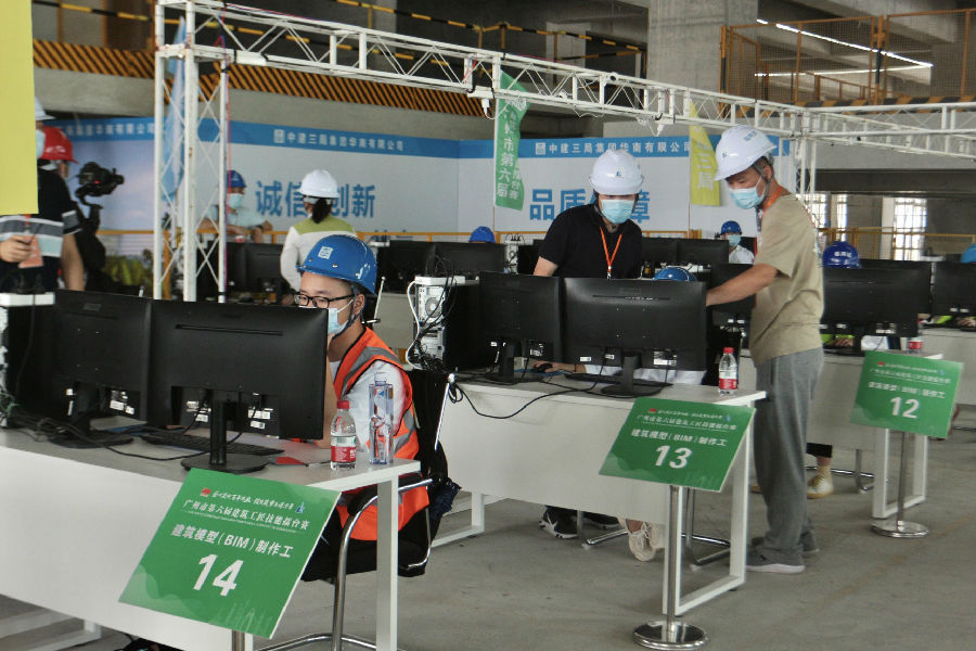 而在建筑模型(BIM)工比賽中,參賽選手通過BIM建模軟件制作出外觀造型古樸大方的框架結(jié)構(gòu)建筑。BIM是近年來在計算機(jī)輔助建筑設(shè)計領(lǐng)域出現(xiàn)的新技術(shù),BIM技術(shù)作為建筑行業(yè)新式科技,能很好地解決建筑施工中的難點(diǎn)問題,在進(jìn)行設(shè)計和應(yīng)用階段提前檢查出各專業(yè)的“錯、缺、漏、碰”,其“可視化、模擬性、協(xié)調(diào)性、優(yōu)化性、可出圖性”等五大特質(zhì),實(shí)現(xiàn)真正意義上的數(shù)字化綠色建造,儼然是建筑業(yè)的“神兵利器”。本屆擂臺賽中建筑模型(BIM)制作工參賽選手的平均年齡僅為25歲,新一批年輕技能人才隊(duì)伍加入建筑業(yè)行業(yè)發(fā)展的“快車道”。