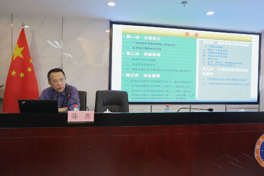 本次培訓由市質監站黨總支書記陳熙對廣州市行政區工程文明施工、質量管理、安全監督體系、事故應急與故事調查,工程項目新冠肺炎防控管理等5個方面展開,對文明施工管理規定和現場圖片進行分析;對質量行為和重要分部分項工程實體質量常見問題及控制要點講解;對項目現場安全要求與隱患圖片分析;宣貫工程質量安全事故登記報告和追訴標準、分享有關事故調查案例;對工程項目新冠肺炎防控基本要求和存在問題宣貫結合具體事例進行剖析講解。