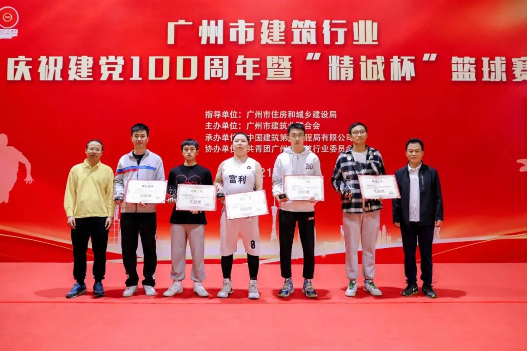 比賽結束后,緊接著進行廣州市建筑行業慶祝建黨100周年暨“精誠杯”籃球賽的閉幕式,我會執行會長崔浩江、秘書長常桂枝、副秘書長張江華和中建四局工會副主席葉鷗、工會工作部主任石慶林,安全生產監督管理部總經理楊忠,工會工作部副主任史昆靄等領導出席。