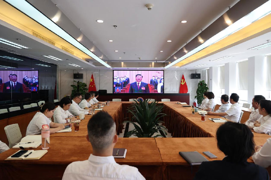 10月16日上午10時(shí),中國共產(chǎn)黨第二十次全國代表大會(huì)在人民大會(huì)堂開幕,習(xí)近平總書記代表第十九屆中央委員會(huì)向黨的二十大作報(bào)告。廣州市建筑業(yè)聯(lián)合會(huì)黨支部組織全體黨員干部集中收聽收看中國共產(chǎn)黨第二十次全國代表大會(huì)現(xiàn)場(chǎng)直播,認(rèn)真聆聽學(xué)習(xí)習(xí)近平總書記代表第十九屆中央委員會(huì)所作的工作報(bào)告。