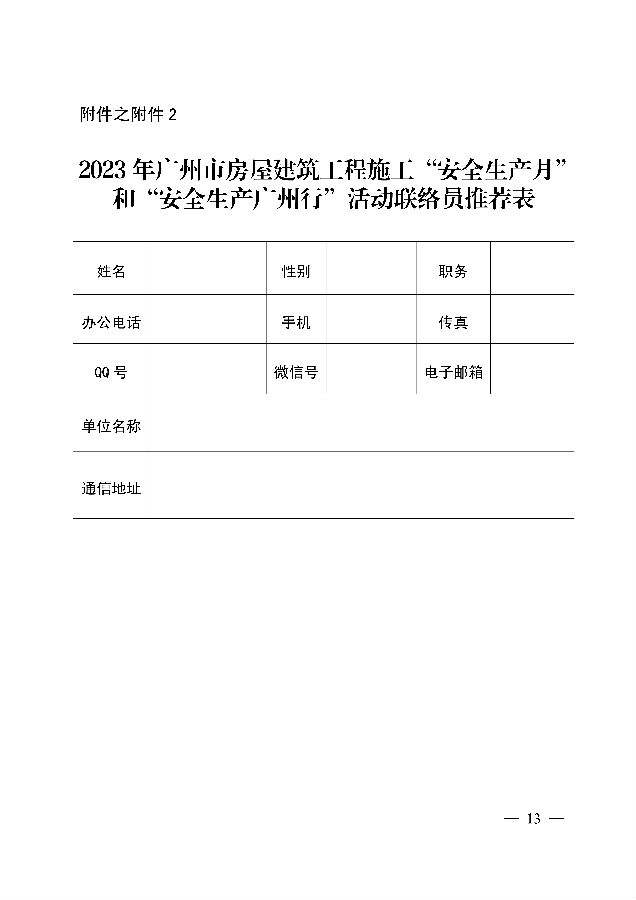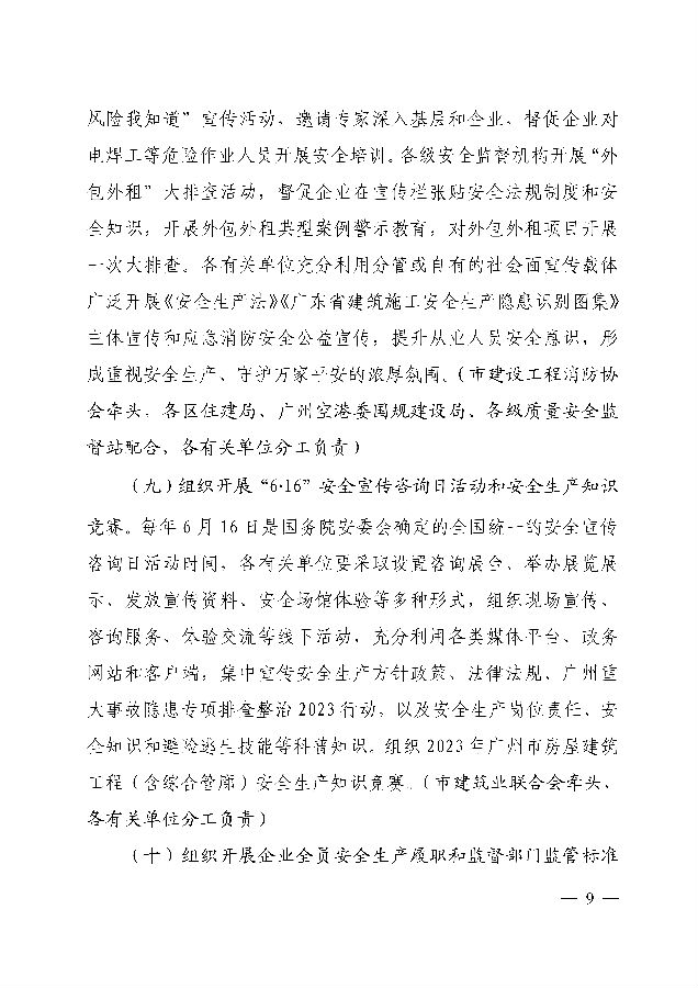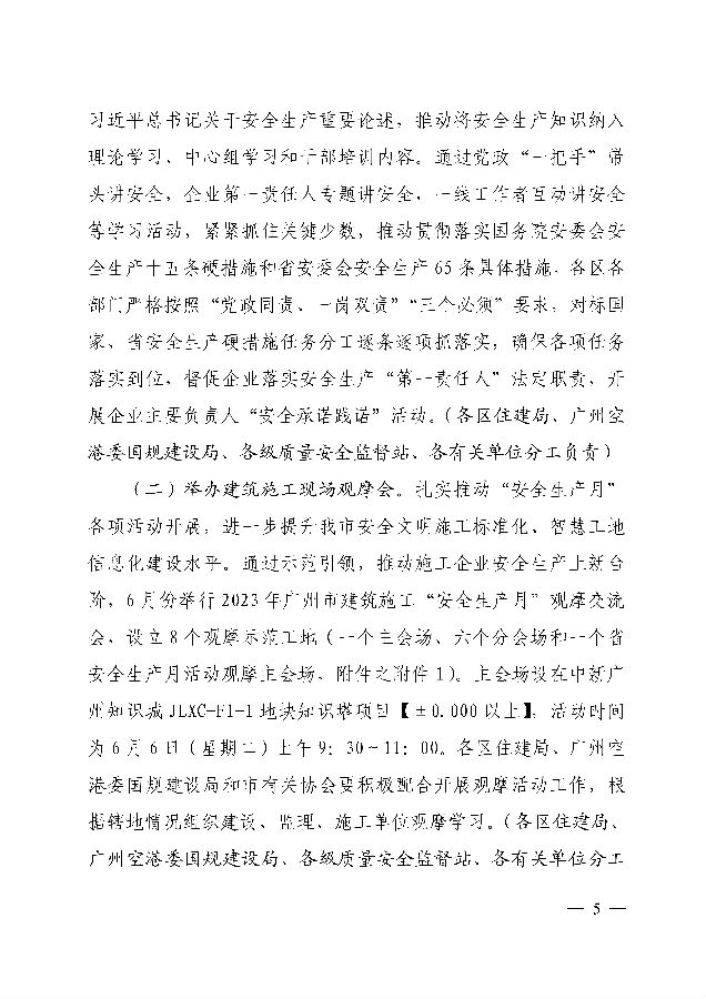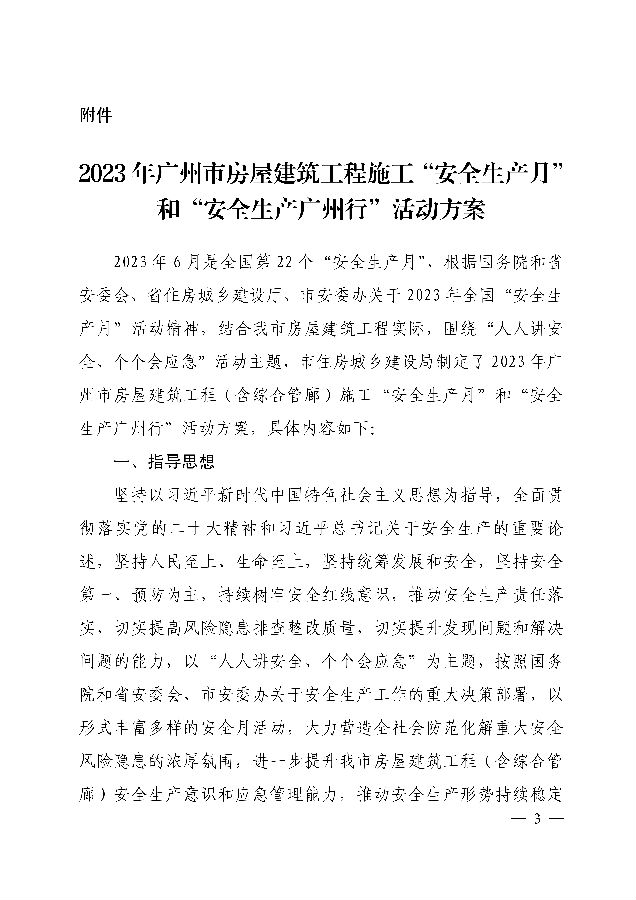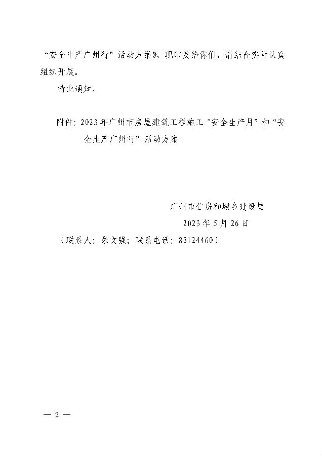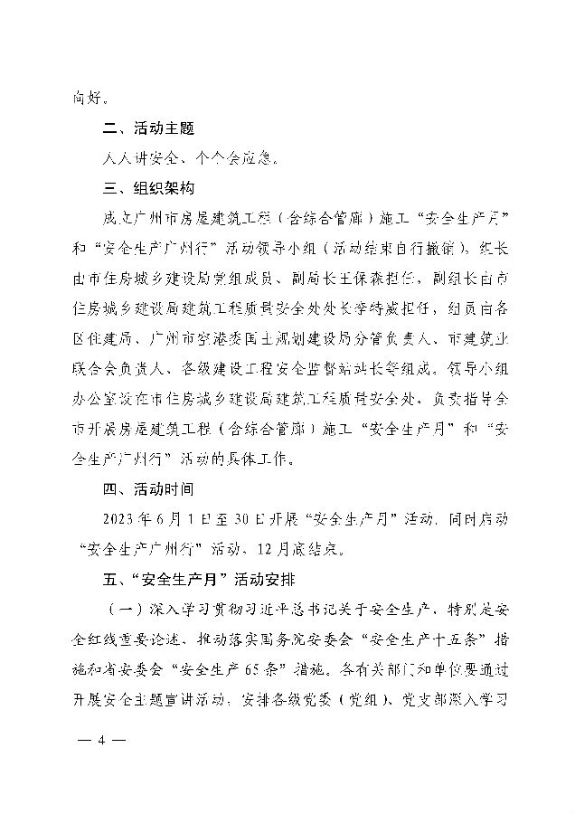 關于轉發《廣州市住房和城鄉建設局關于印發 2023 年 廣州市房屋建筑工程施工“安全生產月” 和“安全生產廣州行”活動方案的通知》的通知