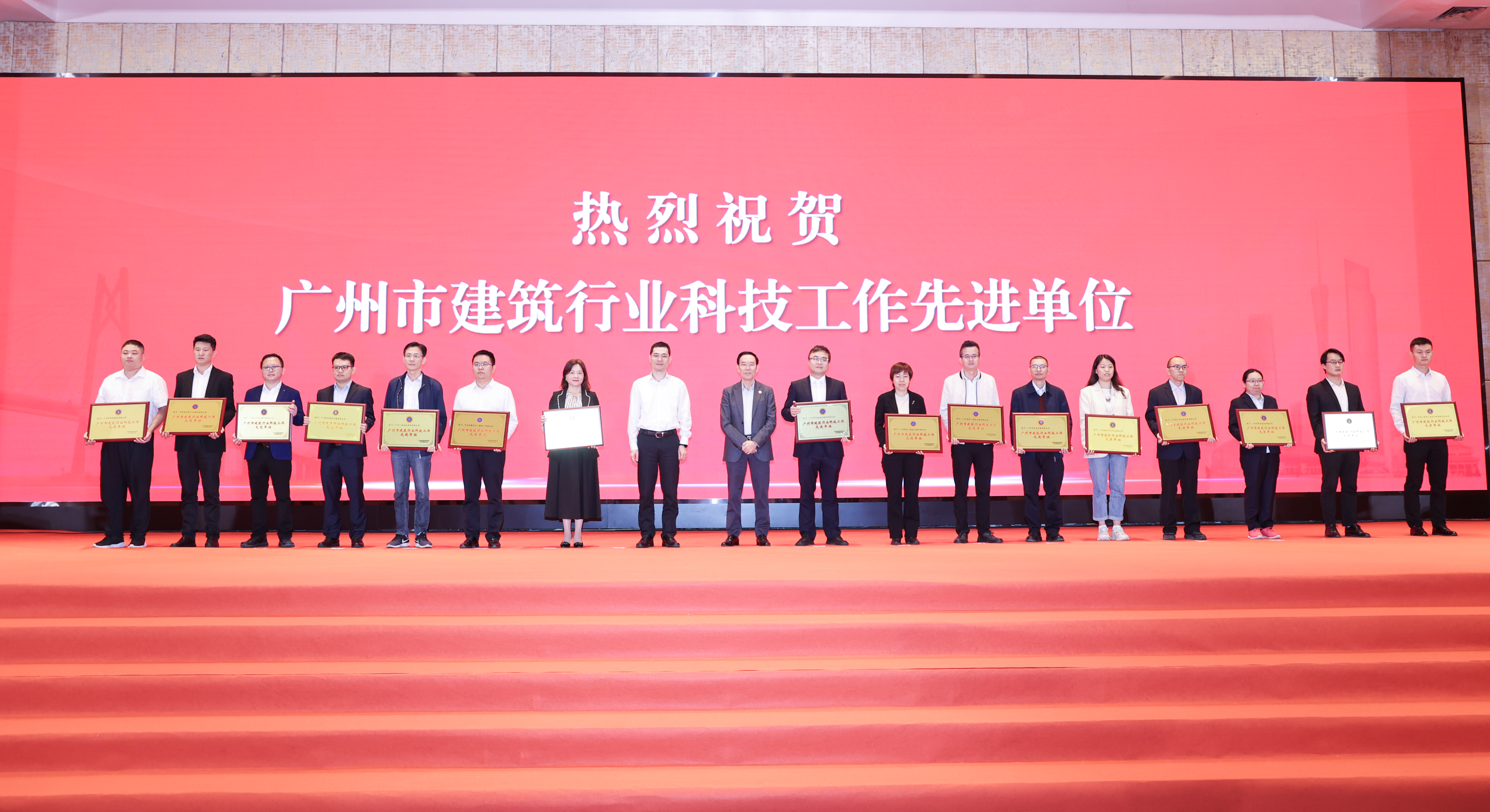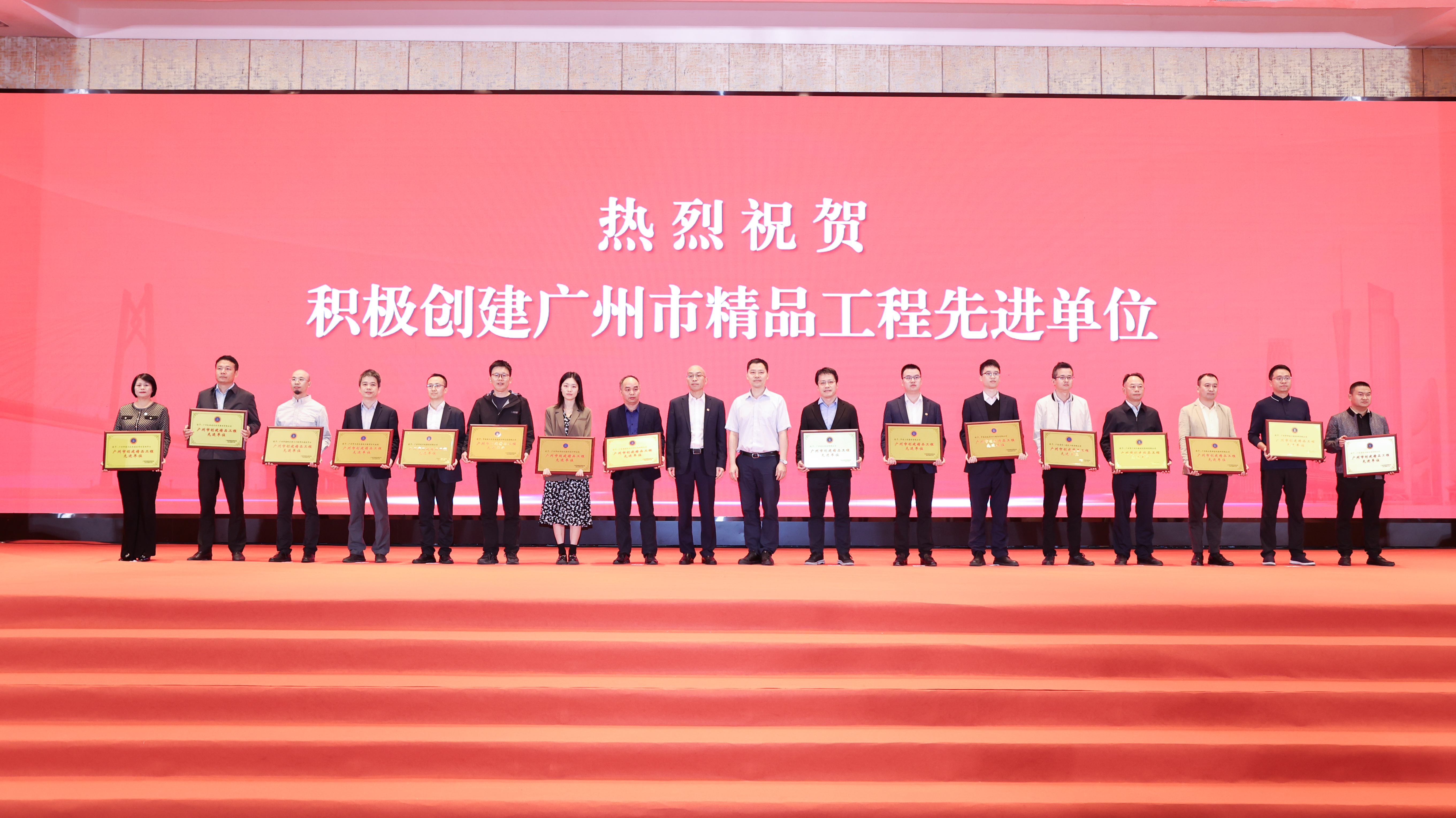 會議對榮獲廣州市建筑業優秀企業、優秀企業家和優秀項目經理,廣州市積極創建精品工程先進單位,廣州市建筑行業科技工作先進單位進行了表彰。
