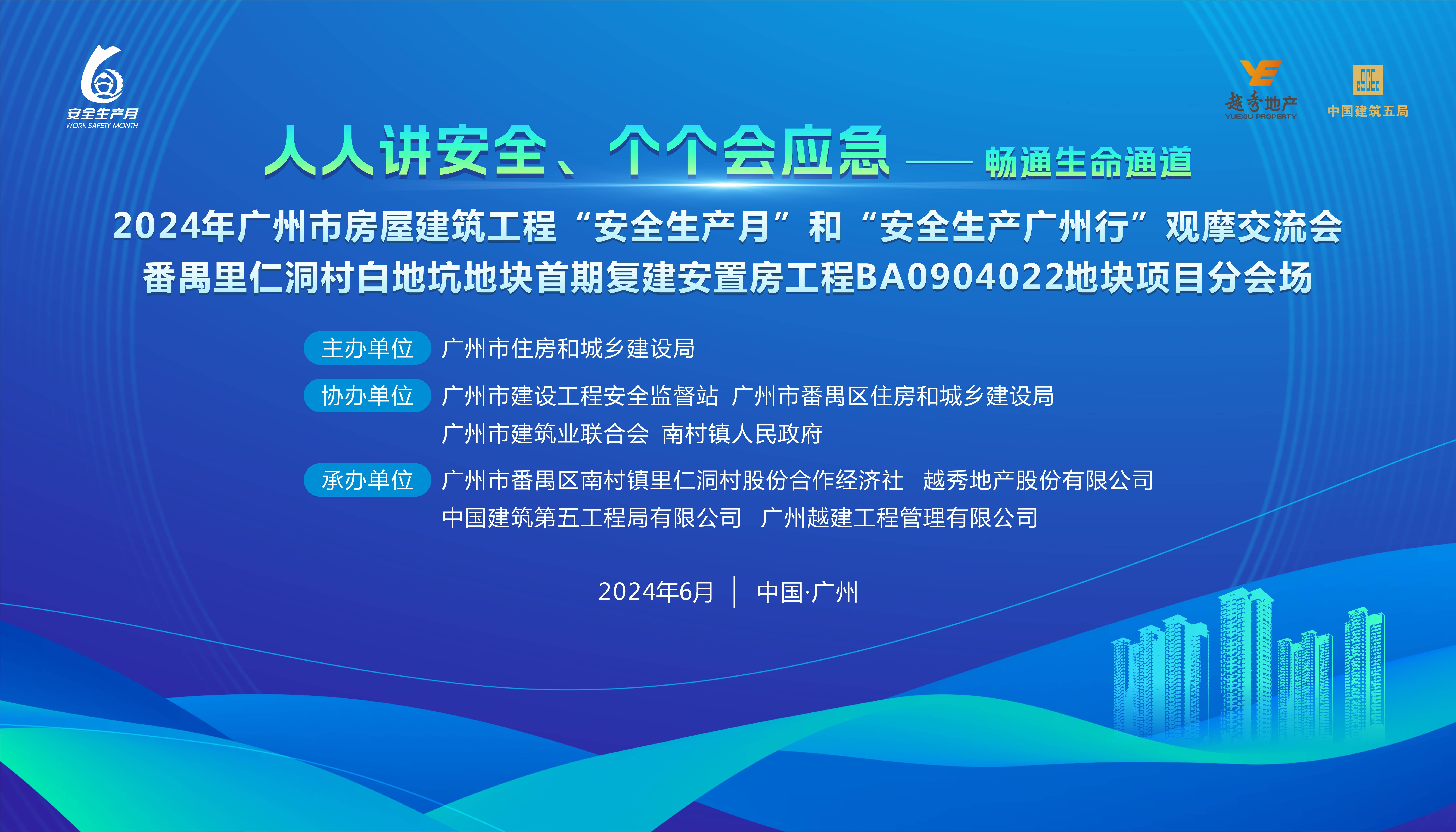 按照2024年廣州市房屋建筑工程“安全生產(chǎn)月”和“安全生產(chǎn)廣州行”活動(dòng)的統(tǒng)一部署,由廣州市住房和城鄉(xiāng)建設(shè)局主辦,廣州市建筑業(yè)聯(lián)合會(huì)協(xié)辦的2024年廣州市房屋建筑工程“安全生產(chǎn)月”和“安全生產(chǎn)廣州行”觀摩交流會(huì)分會(huì)場(chǎng),于6月26日上午,在中國(guó)建筑第五工程局有限承建的番禺里仁洞村白地坑地塊首期復(fù)建安置房工程BA0904022地塊項(xiàng)目成功舉辦。廣州市各地市相關(guān)部門(mén)、行業(yè)協(xié)會(huì)、施工企業(yè)有關(guān)負(fù)責(zé)人等300余人參加觀摩活動(dòng)。