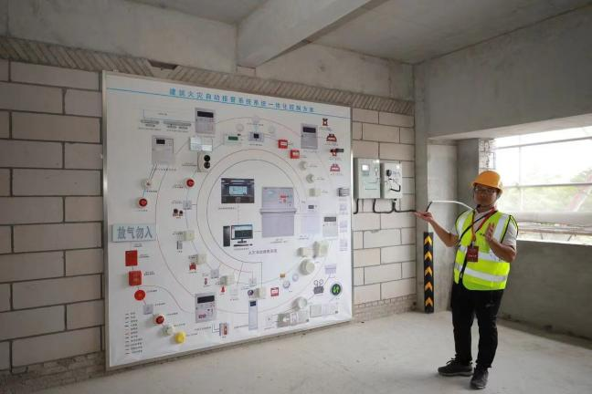觀摩現場還設置了“樣板先行·質量有管控”的展示區,以全生命周期BIM技術應用模式為基礎,通過各階段的模型數據傳遞和集成,實現各階段、各參建方高效協同。項目建設內部結構采用裝配式施工,實行實體結構管控、高精氣砌體+ALC墻板、地下室管廊綜合深化等技術手段,秉承綠色施工理念運用實時環境監測系統、現場揚塵控制技術確保施工現場綠色環保,全力打造具有綠色技術集成、標準化集成、裝配化施工等特點的工藝。